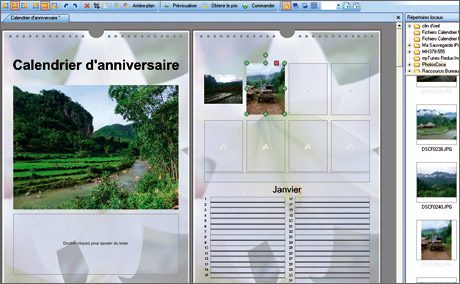 il suffit de placer les photos directement sur les pages, elles sont toutes envoyées lors de la commande. Enfin, la qualité du calendrier est bonne, tant au niveau du tirage que du papier.