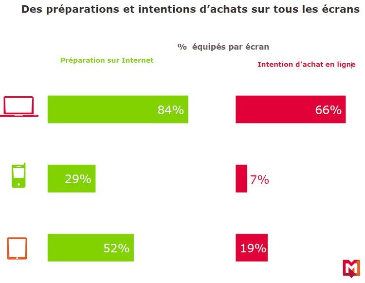 Les achats de Noël, on y pense désormais plusieurs semaines à l’avance. Cette année, 85 % des Français prévoient de préparer leurs achats en ligne en consultant plusieurs sites, en lisant des fiches techniques pour acheter le produit adéquat, etc. Ils effectueront ces recherches prioritairement sur PC (85 %), puis sur tablette (52%) et enfin sur smartphone (29 %). Et après cette phase de préparation, 69 % d’entre eux déclarent avoir l’intention d’effectuer leurs achats en ligne. Là encore principalement sur PC.