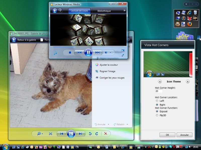 Sous Vista il existe une façon encore plus naturelle et sympathique de disposer de la fonction Exposé. Vista Hot Corners est un petit gadget pour le volet Windows. Hyper rapide et peu consommateur de ressources, il utilise les