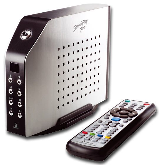 modèle. Il intègre, pour sa part, un disque dur traditionnel, au format 3,5 pouces, de 200 ou 300 Go. Il supporte les formats DivX, xVid, Mpeg-4, AVI, VOB, MP3, WMA, WAV, AAC et Ogg Vorbis. Le Screenplay Pro intègre en particulier une