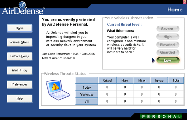 AirDefense Personal Lite 2.1 est un système d’autorenforcement de vos défenses dès qu’une liaison à un réseau sans fil est détectée.