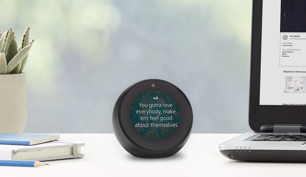 Lors d’un évènement « surprise », Amazon a dévoilé de nouveaux appareils dans sa gamme Echo. Parmi ceux-ci, un surprenant réveil sphérique baptisé Echo Spot et mesurant 104 x 97 x 91 mm. Doté d’un écran couleur de 2,5 pouces et d’une interface Wi-Fi, il fonctionne avec l’assistant numérique personnel Alexa d’Amazon pour répondre à des questions et afficher des informations, par exemple la météo ou les nouvelles du jour. L’Echo Spot permet aussi de commander les lumières, contrôler la température et passer des appels vidéos. De plus, il fait office d’enceinte connectée, compatible avec les services de diffusion Prime Music, Pandora, Spotify, iHeartRadio, et TuneIn. Pour cela, l’appareil embarque quatre micros avec un système de réduction du bruit, une caméra frontale et un haut-parleur de 2 W. Il dispose également d’une interface Bluetooth et d’une sortie audio pour se connecter à d’autres enceintes. En revanche, une prise de courant est requise faute de batterie.