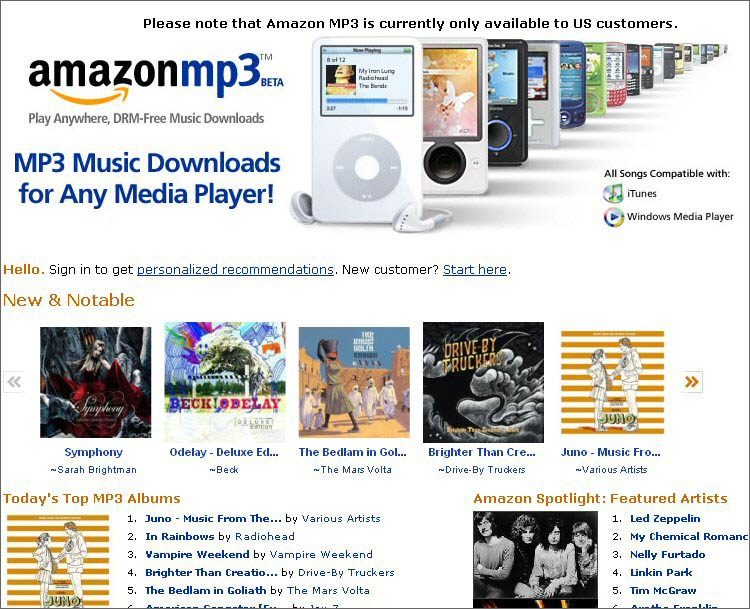 de son catalogue au format MP3 (sans DRM) au deuxième trimestre 2008.En France, FnacMusic ou VirginMega s’y sont mis depuis un an, essentiellement pour des