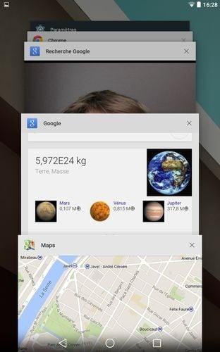 Mais ce qui frappe l’utilisateur en premier lieu, sur Lollipop, c’est plutôt son tout nouveau look, Material Design. Google a déjà entamé la modernisation du design de plusieurs de ses applis Android (comme Chrome) et il y a fort à parier que les futurs utilisateurs de Lollipop ne seront pas en terrain inconnu. Material Design apporte des fenêtres et icônes arrondies, de nouvelles transitions, et quelques nouveautés sympathiques, comme un carrousel d’appli récentes revu et corrigé.