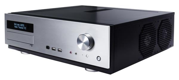prises USB et FireWire en façade qui le trahissent et montrent qu’il s’agit bel et bien d’un équipement informatique.En façade, un écran affiche les différentes informations du système (volume, plage audio écoutée, etc.). En dessous, on trouve une baie 5,25 pouces dans laquelle on peut loger un lecteur optique tel qu’un graveur de DVD par
