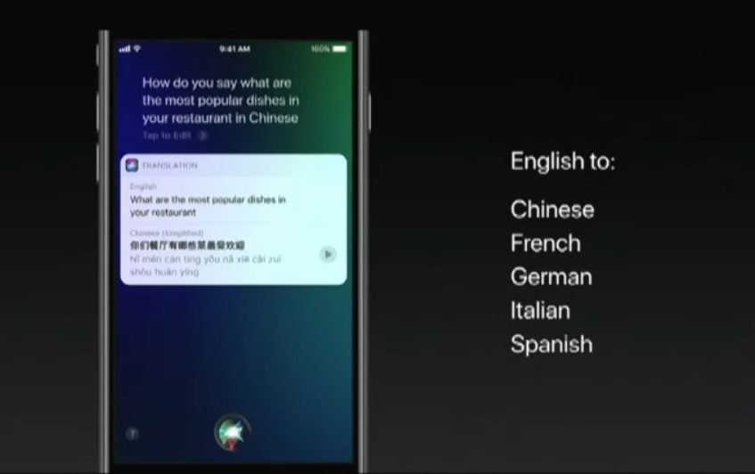 C’est encore grâce à l’apprentissage profond que la voix féminine ou masculine de Siri va s’améliorer. Plus fluide, plus nuancée et au final plus naturelle avec des ruptures de rythme et d’intonation. Mais le plus intéressant à venir, c’est la possibilité de faire de la traduction en temps réel. Pour le moment, il s’agit d’une version bêta. Mais Apple promet que cette fonctionnalité sera disponible dès cet automne avec iOS 11, en anglais vers du français, chinois, allemand, italien et espagnol.