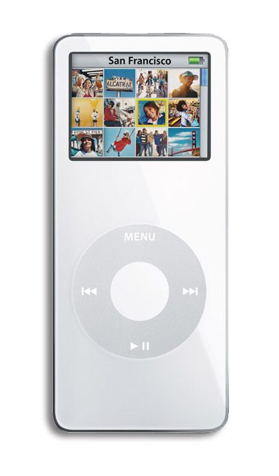 flash, de 2 ou 4 Go, qui peut donc contenir environ 500 ou 1000 chansons. Les principaux formats audio supportés sont AAC, AAC protégé, MP3 et MP3 à taux d’échantillonnage variable.L’iPod Nano est également équipé d’un écran LCD couleur de 3,8 cm de diagonale, capable d’afficher les images aux formats Gif, Tiff, Jpeg, BMP, PNG et PSD. La sélection des