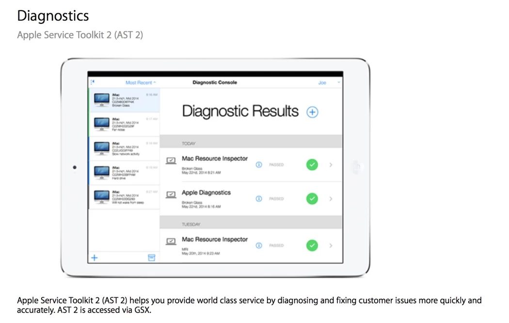 Après l’intervention d’un tiers, la machine peut tout simplement refuser de fonctionner avec, selon le document « un système inopérant et une réparation incomplète ». Il faut alors utiliser la suite logicielle de diagnostics Apple Service Toolkit 2, disponible uniquement auprès des réparateurs agréés par Apple, pour rendre la machine à nouveau fonctionnelle.