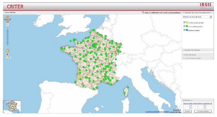 D’autant que l’Institut a mis en ligne depuis le 14 mars un outil cartographique baptisé Criter Japon, qui « met à disposition du public les résultats de la surveillance radiologique du territoire français effectuée par l’IRSN dans le contexte des événements nucléaires en cours au Japon ». Lui aussi est difficile d’accès.