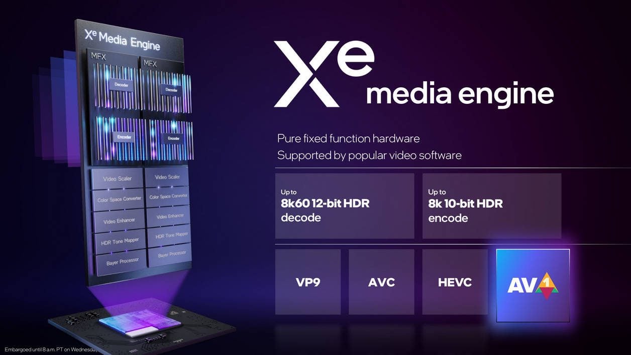 Chez Intel, il prend le nom de « Xe Media Engine » et c’est aussi par lui que l’entreprise veut faire la différence avec AMD et Nvidia, les rois actuels des GPU du monde PC.