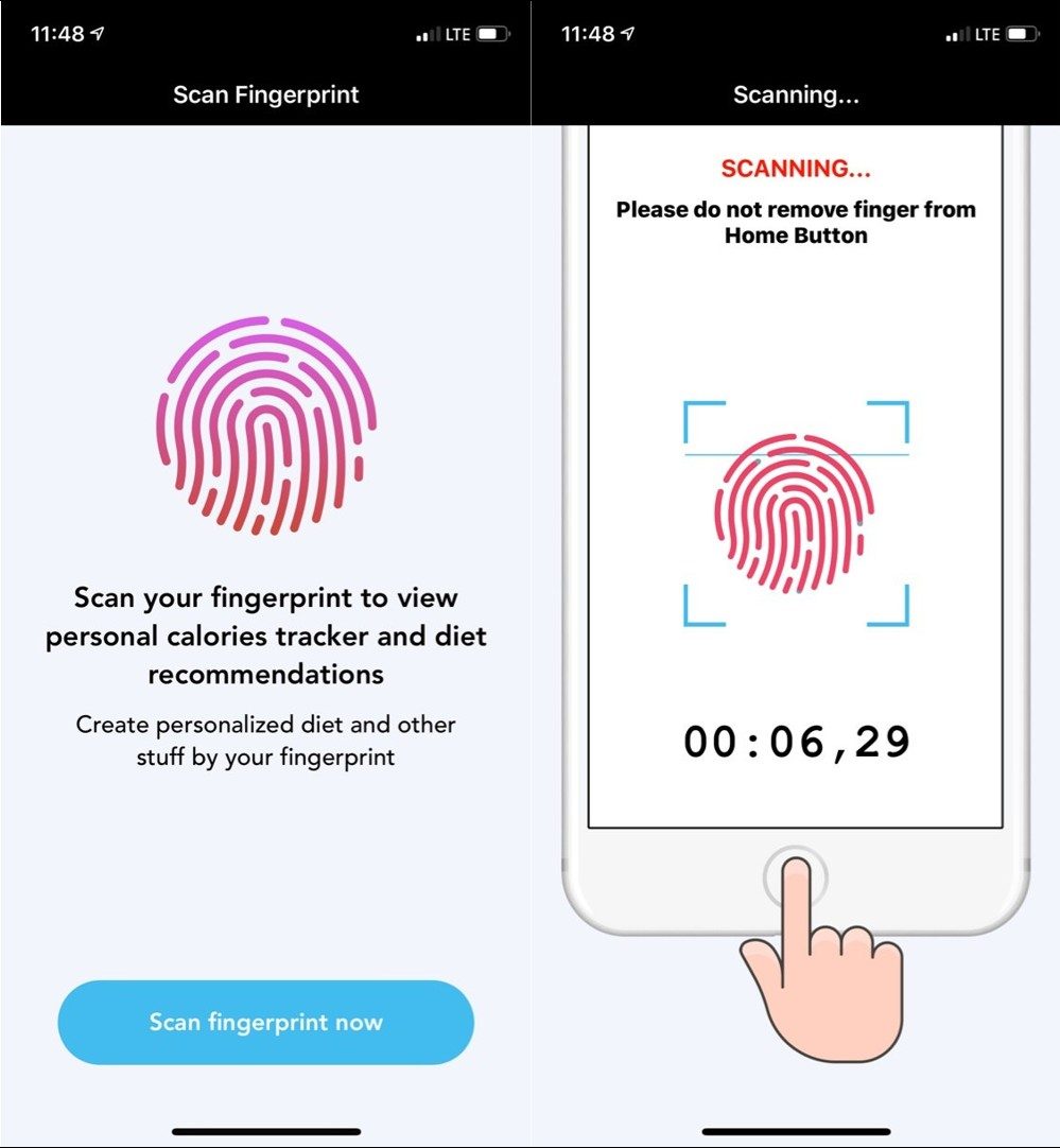 Pour y arriver, le développeur indélicat a créé une entourloupe graphique autour de la fonction Touch ID, qui permet justement de valider des paiements in-app par empreinte digitale. Une fois que l’utilisateur lance l’application, celle-ci l’incite à scanner son doigt pour soi-disant accéder au suivi de calories et obtenir des recommandations personnalisées sur le régime diététique à suivre. S’il tombe dans le panneau et qu’il pose son doigt sur le bouton Touch ID, l’application va initier une procédure de paiement in-app qui, du coup, sera automatiquement validée.