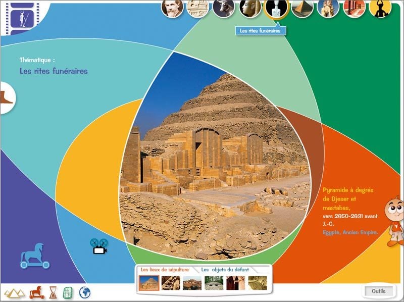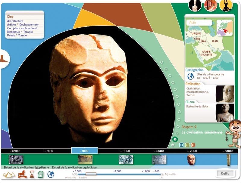 bronze. Crétois, Mycéniens, Olmèques, Shangs, Sumériens y connaissent leur heure de gloire. Un récit pour les plus jeunes, constitué d’un enchaînement de cartes, d’animations, de photos, permet de découvrir les beautés de ces civilisations