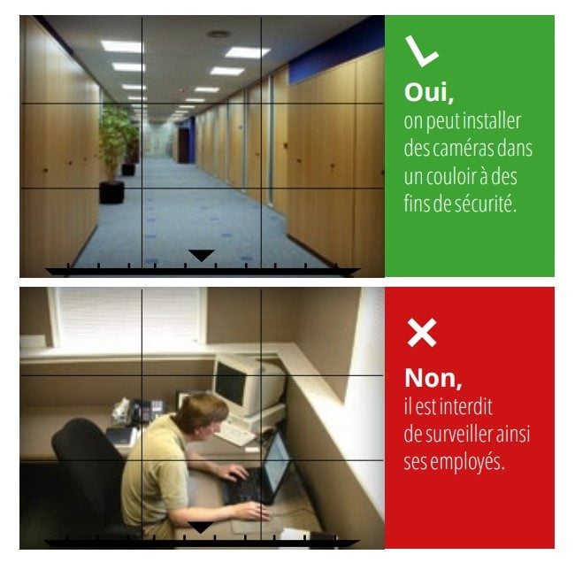 Exemple : les caméras de surveillance. Comme l’explique un guide en ligne de la CNIL, elles ne peuvent être installées qu’après une consultation des instances de représentation du personnel. Elles peuvent filmer les lieux de passage comme les couloirs, les paliers ou les halls d’accueil. Mais elles ne peuvent pas filmer les employés sur leur poste de travail, et encore moins dans les zones de repos ou les toilettes.