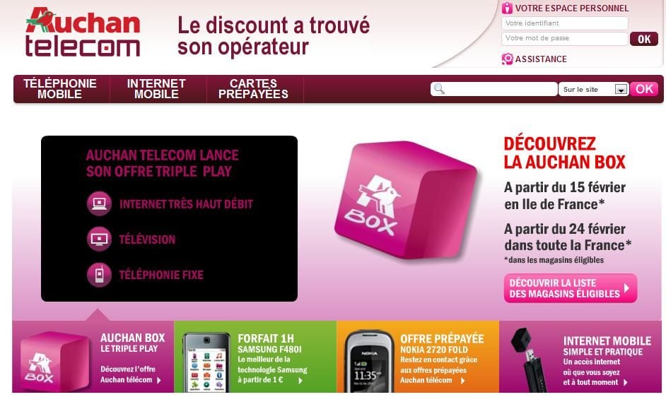 Lundi 15 février 2010, les premières box Auchan vont faire leur apparition dans les supermarchés de l’enseigne implantés en Ile-de-France. Puis, le 24 février, elles seront disponibles dans les magasins en région.