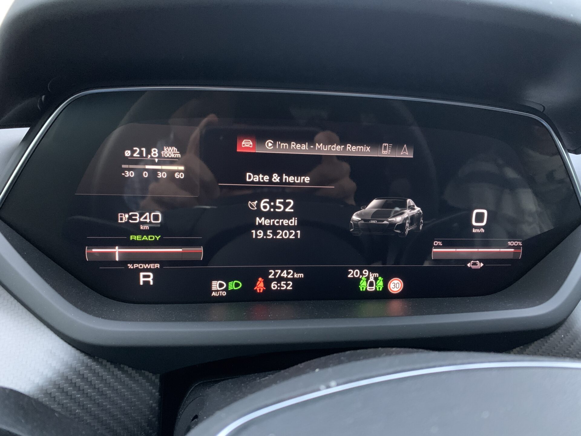 Pourtant, avec une consommation oscillant entre 21 et 23 kWh/100 km le bolide d’Audi ne fait pas partie, en théorie du moins, des voitures les plus adaptées aux longs trajets.