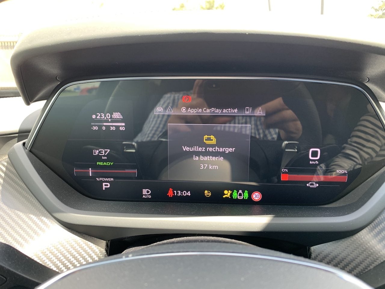 En effet, pour cet arrêt à presque mi-parcours, le système intelligent d’Audi prévoyait un matelas de 13% de batterie restante.