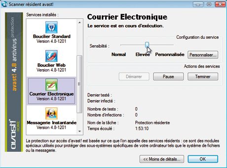 La sensibilité de chacun de ces boucliers, réglée par défaut sur Normal, est personnalisable. Pour plus de sécurité, choisissez une sensibilité Elevée. Pour faire ce réglage, une fois Avast! installé, faites un