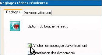 Dans la fenêtre qui s’ouvre, cochez ou décochez les cases correspondantes et cliquez sur OK.Bouclier réseauCe bouclier empêche la propagation des virus provenant d’Internet vers les différents micros de votre réseau.