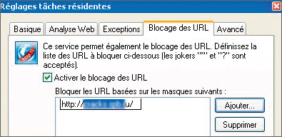 Ce réglage a pour effet d’activer toutes les options de personnalisation du bouclier. Mais vous pouvez tout de même aller plus loin dans la protection en interdisant l’accès à certains sites que vous savez pourvoyeurs de virus.