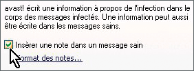 sain. Pour cela, cliquez sur le bouton Personnaliser puis, dans la fenêtre qui s’affiche, cochez la case Insérer une note dans un message sain :
