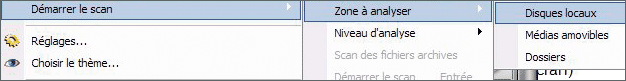 Dans la fenêtre principale du logiciel, cliquez n’importe où du bouton droit de la souris et sélectionnez Démarrer le scan, puis Zone à Analyser et enfin Disques locaux.