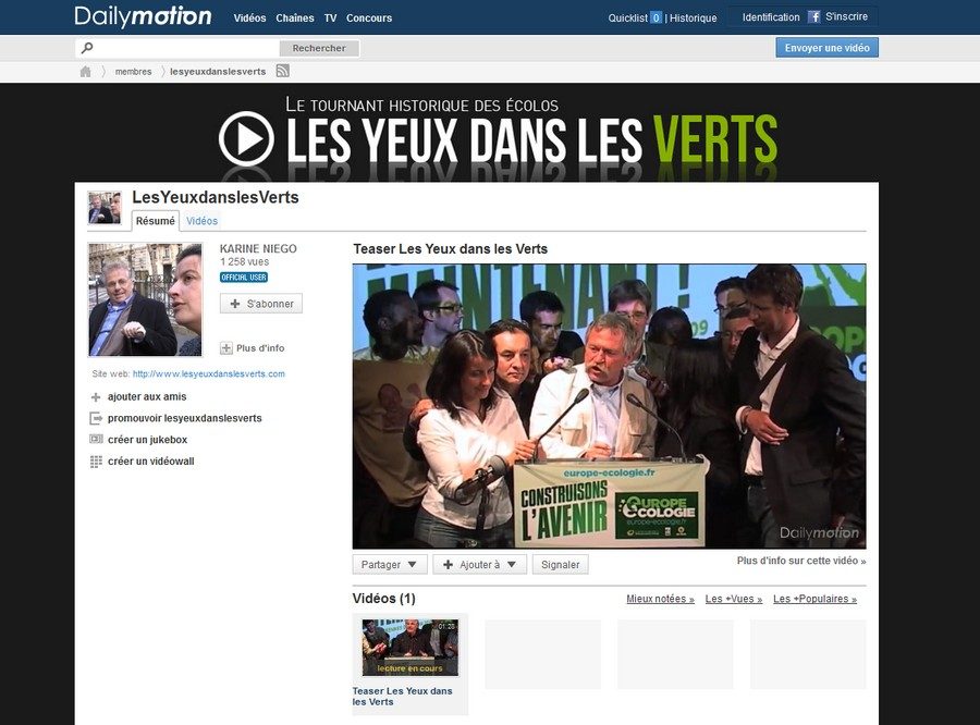 On connaissait Les Yeux dans les Bleus, documentaire retraçant l’épopée de l’équipe de France de football lors de la Coupe du monde de 1998. Voici aujourd’hui Les Yeux dans les Verts. Rien à voir avec le football, ni avec le club de Saint-Etienne. Il s’agit de « la première web-série politique en France », telle qu’elle est présentée, consacrée à la campagne électorale des écologistes, lors des élections régionales de 2010 et au-delà (journées d’été, annonce de la candidature d’Eva Joly…) Mais ce n’est pas exactement le cas, puisque dans le même genre le site Tele Toc avait narré l’histoire de Jean-Luc Mélenchon (Voir vidéo en fin d’article).