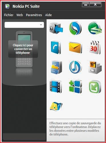 1 Installez et lancez Nokia PC Suite sur votre PC :2 Branchez votre mobile avec son câble USB.