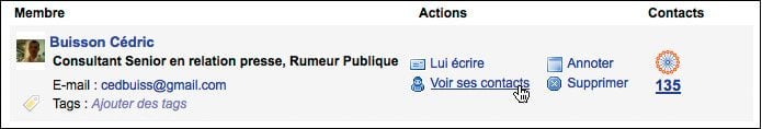 Les contacts de vos contacts peuvent devenir vos contacts ! Pour cela, cliquez sur l’onglet Mes contacts. En regard de chacun de vos contacts, vous pouvez cliquer sur Voir ses contacts, dont le