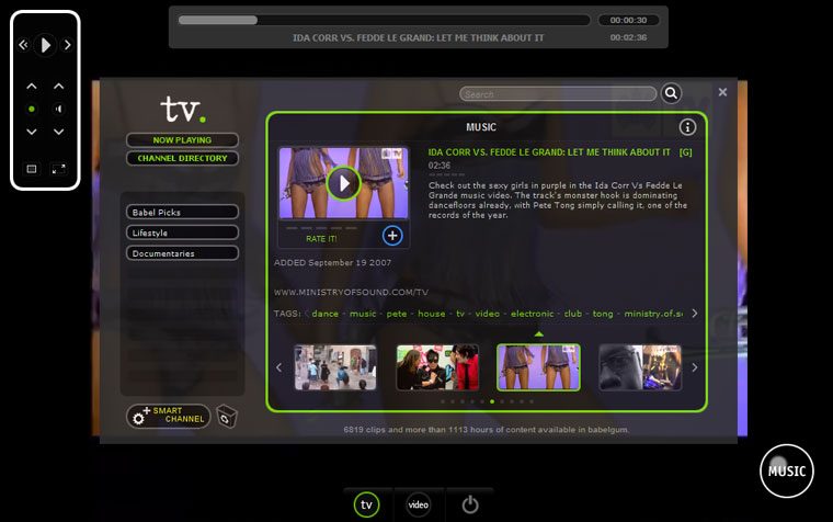 Très inspiré de Joost et financé par un milliardaire italien, Babelgum s’affirme comme un concurrent très sérieux pour Joost. On y retrouve le même désir de rénover l’usage de la télévision en mixant les concepts de