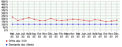 Durant le mois de décembre, le marché de la prestation informatique s’est légèrement dégradé : l’offre des SSII, toutes catégories techniques confondues, a progressé de 7 %, alors que la demande des clients a diminué de