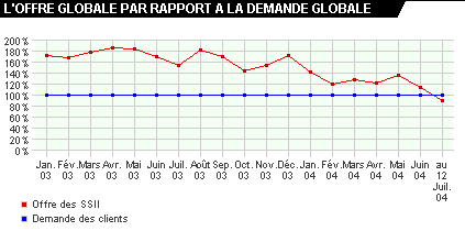 conséquente pour la souligner. En effet, en juin 2003 la demande avait augmenté de 13 % entre le mois de mai et le mois de juin, cette année elle a progressé de près de 40 % sur cette même période.Ainsi le ratio offre/demande global s’est fortement amélioré passant de 138 offres pour 100 demandes en mai à 116 offres pour 100 demandes en juin. Cette amélioration s’observe dans 9 des 11 catégories