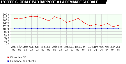 – CRM-Décisionnel-Datamining : 107 offres pour 100 demandes en juillet, contre 68 offres pour 100 demandes en juin.