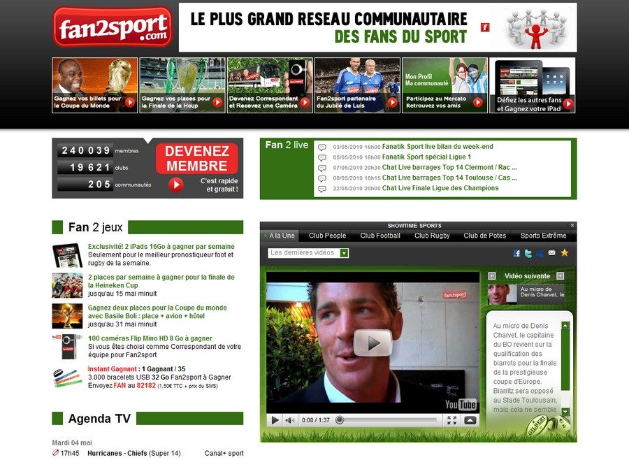 Le premier réseau communautaire du monde du sport ». Voilà comment est présenté Fan2sport.com, officiellement inauguré ce mardi 4 mai 2010 par ses trois cofondateurs : Bernard Laporte, ex-sélectionneur du XV de France et ex-secrétaire d’Etat chargé des Sports ; Basile Boli, ex-joueur de football international, et Denis Charvet, ex-joueur de rugby international.