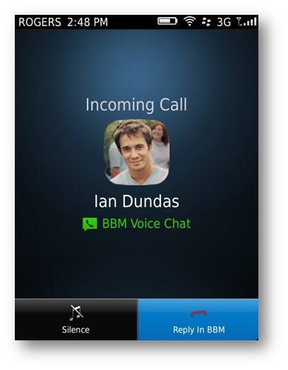 La fonction vocale est totalement intégrée à l’univers multitâche de BBM. Autrement dit, tout en discutant vocalement, on peut continuer à envoyer à son interlocuteur des messages texte, des photos, des fichiers, etc. Lorsqu’on entame un chat BBM avec un contact, une icône indique à l’écran si cet utilisateur dispose lui aussi de la fonction Wi-Fi et l’on peut immédiatement déclencher un appel vocal (en Wi-Fi donc) par simple pression sur la touche d’appel traditionnelle du smartphone. Si l’interlocuteur n’est pas disponible pour une telle conversation vocale, il peut immédiatement vous le signaler d’une icône ou d’un message textuel. Si vous possédez un casque Bluetooth, celui-ci est bien évidemment pris en compte et utilisable pour les appels Wi-Fi.