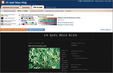 Enfin, si le modèle de mise en page que vous avez choisi ne vous convient pas complètement, vous pouvez modifier la couleur du fond, celle du texte, du titre, des liens, mais aussi les polices des textes. Sachez que vous pouvez