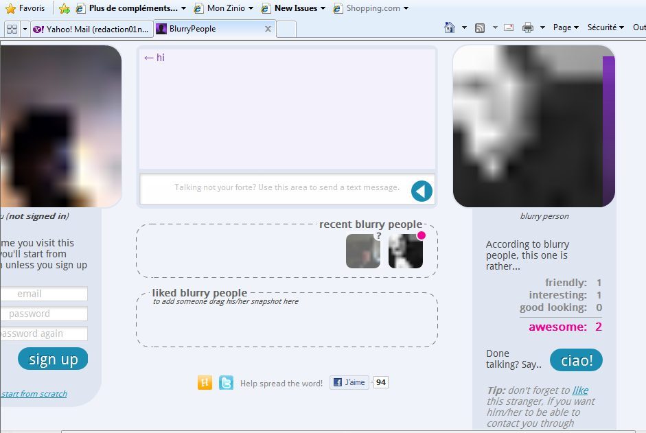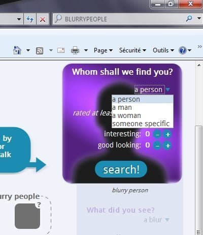 A en croire BlurryPeople, les membres courent moins de risque d’être confrontés à une vue classée X. Tout comme Chatroulette, le site expose concomitamment les images de deux interlocuteurs. Mais lors de la connexion, BlurryPeople n’affiche pas directement des images prises par la webcam. Celles-ci sont floues.