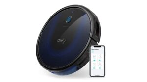 Cet aspirateur robot connecté se distingue par ses deux brosses multi-surfaces et son système de nettoyage en trois étapes. Il évite les obstacles grâce à ses capteurs. L’appareil se contrôle par smartphone et fonctionne avec les assistants de Google et d’Amazon.