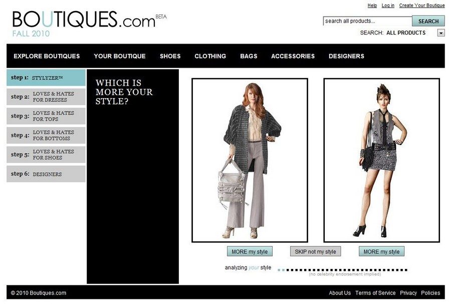 Lors de son inscription, à chaque page, lui sont proposées deux photos de mode. Il lui faut choisir quel style lui correspond le mieux. Puis indiquer les chaussures, formes de robes et autres accessoires, qu’elle aime ou qui sont, selon elle, rédhibitoires. Le moteur définit son look : casual chic, romantic, street, classic, etc. Des tenues correspondant à son style lui sont suggérées.