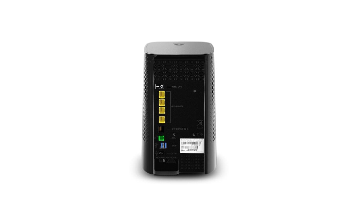 A l’arrière, on trouve quatre ports Ethernet 1 Gbit/s, un port Ethernet 10 Gbit/s, 2 ports USB-3 et un port RJ 11 pour le téléphone.