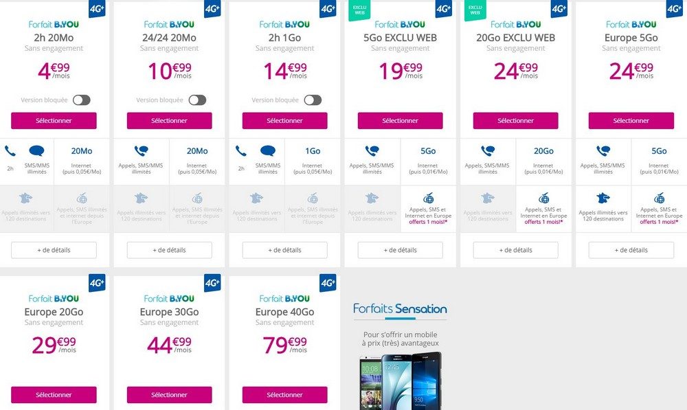 Autre victime de cette mise à jour, le forfait de 10 Go à 39,99 euros par mois qui disparaît. Mais pour le coup, c’est une bonne affaire puisqu’il est remplacé par une offre à 20 Go pour seulement 29,99 euros par mois. L’opérateur crée enfin une offre à 30 Go à 44,99 euros par mois.