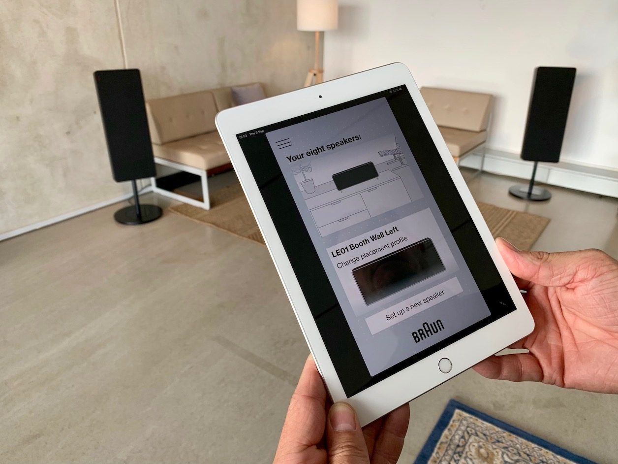 Une application Braun permet également de régler leur égalisation, la balance ou la configuration multiroom. Un système automatique d’égalisation est également implémenté pour harmoniser au mieux les enceintes en fonction de l’acoustique de la pièce.