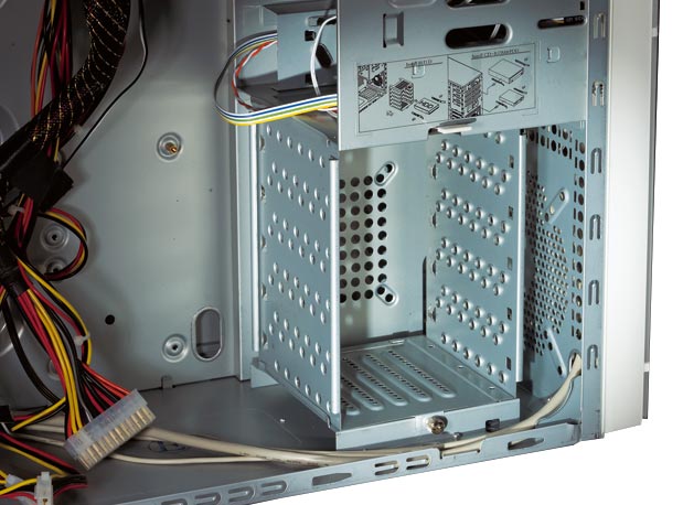 L’ouverture de la cage prévue pour accueillir les disques durs est orientée vers l’extérieur du boîtier, et non vers l’intérieur comme c’est le cas sur de nombreux modèles. Du coup, installer un disque dur dans cette cage se révèle