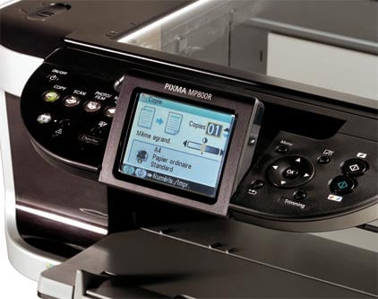 Imprimer, photocopier, numériser… Toutes ces opérations sont aisées avec la Pixma MP 800R. Son écran LCD couleur y est pour beaucoup. De grandes dimensions (8,9 cm), il permet d’accéder à tous les menus. Il permet