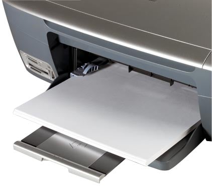 HP a conçu et adopté pour ses modèles un astucieux système d’alimentation du papier : les feuilles entrent et sortent par l’avant. On gagne ainsi en compacité par rapport au système traditionnel, dans lequel les bacs