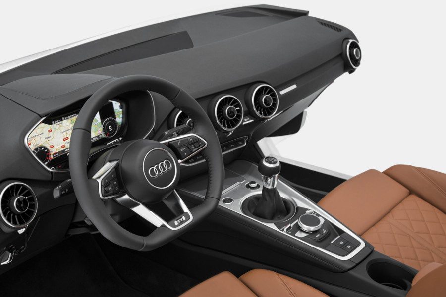 La petite bombinette de la marque aux anneaux, la TT est l’autre star de ce CES 2014 chez Audi. Le constructeur s’est en effet penchée sur la planche de bord et l’a refondue. L’interface MMI (Multi Media Interface) est totalement repensée puisque l’ordinateur de bord n’est plus intégré au centre de la planche de bord, mais directement en lieu et place du panneau d’instrumentalisation. Les traditionnels compteurs à aiguilles sont ainsi remplacés par un large écran LCD (32 cm) beaucoup plus dynamique et, surtout, entièrement personnalisables… pourquoi pas à la demande du client. Ce nouveau MMI dit « central » affiche également – en plus des informations liées aux véhicules – la cartographie GPS, ainsi que les différents messages d’alertes pour les voitures équipées de technologies d’aide à la conduite (caméra vision nocturne, caméra de recul, lecture des panneaux, etc.).