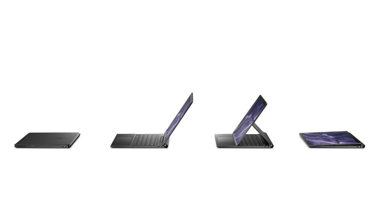Plus haut de gamme, l’Elite Folio de HP est conçu autour d’un châssis plus exotique avec une charnière large qui permet au choix d’avancer l’écran au-delà du clavier ou de replier l’appareil façon tablette – mais l’appareil a l’air très épais et peu confortable à utiliser en mode écriture manuscrite (livré avec un stylet).