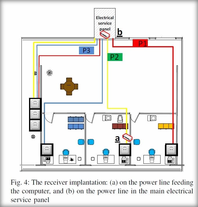 En effet, les chercheurs ont créé un malware baptisé PowerHammer qui – installé au préalable sur le machine ciblée – parvient à envoyer un signal par le réseau électrique que l’on pourra capter de manière passive au niveau du fil d’alimentation ou du panneau électrique d’étage. Evidemment, pas question d’utiliser ici du courant porteur en ligne, ce serait trop simple et bien trop visible.