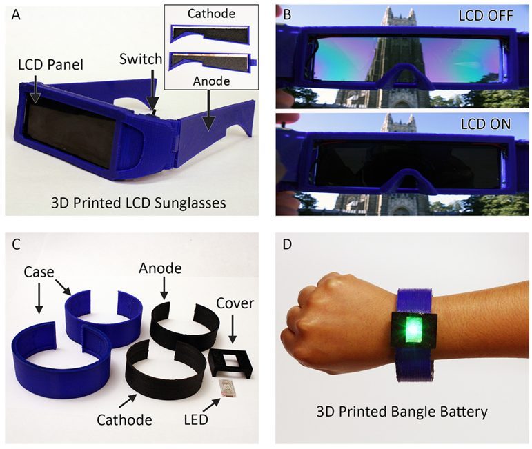 Dans le même esprit, les chercheurs ont mis au point des lunettes dont les verres sont remplacés par des écrans LCD. Les branches sont fabriquées avec le même PLA enrichi et alimentent les écrans. Sans énergie, les verres sont opaques, alimentés ils deviennent transparents. Encore largement perfectible, le procédé se pose en tout cas comme une nouvelle piste dans la quête de batteries inventives, plus souples à intégrer que les modèles lithium-ion actuels.