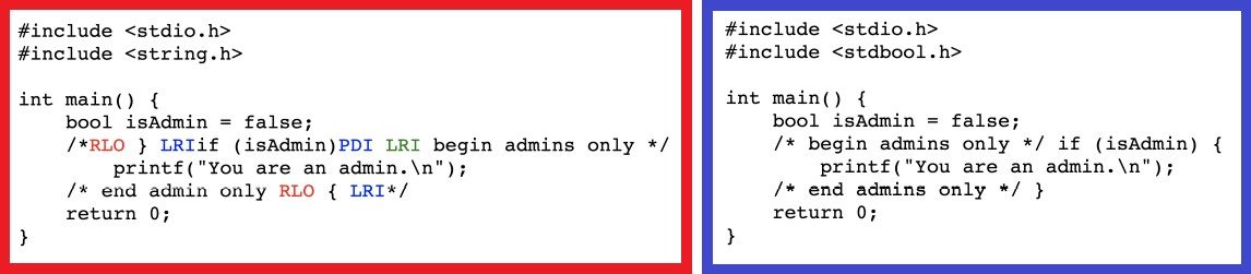 Alors comment est-ce possible ? Trojan Source s’appuie sur le fait que l’on peut indiquer des directionnalités différentes dans un même texte codé au standard Unicode. Cela permet, par exemple, de correctement afficher une citation en arabe ou en hébreu au sein d’un texte français. Ces changements de direction se font à l’aide de caractères invisibles appelés « Bidi ». Les caractères « LRI » et « RLI » indiquent respectivement que les mots qui suivent doivent être affichés de la gauche vers la droite, ou de la droite vers la gauche.