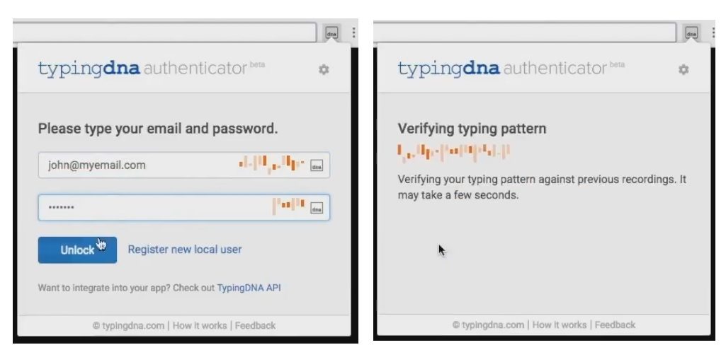 Par exemple, il faut entrer son identifiant, par exemple son adresse électronique, et son mot de passe, puis un code de confirmation reçu par SMS. L’extension de TypingDNA remplace la seconde étape par le contrôle de la façon dont l’utilisateur a tapé son identifiant et son mot de passe sur le clavier de son ordinateur.